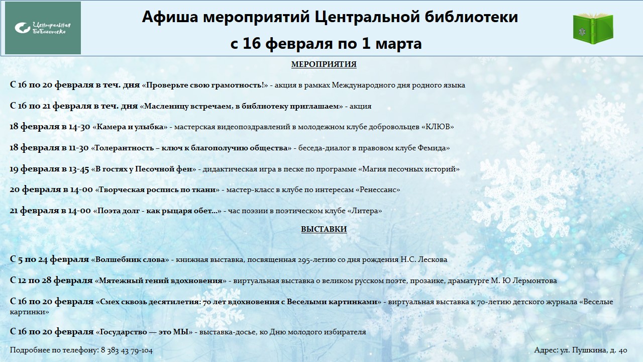 Афиша мероприятий библиотек Искитима