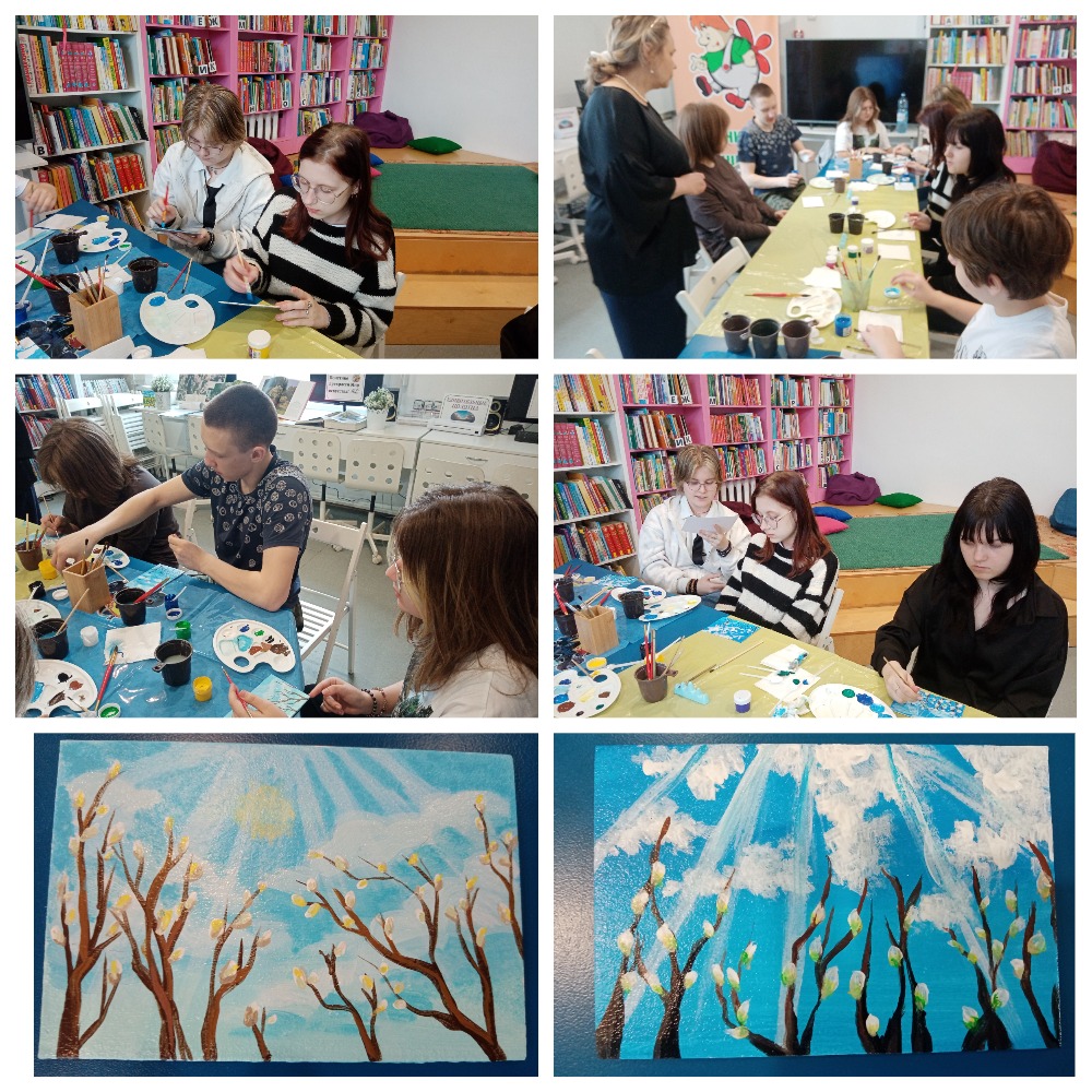 15 апреля в Детской модельной библиотеке собралась молодёжь на арт-час «Весна идёт…» по программе «Пушкинская карта». Соединяя поэзию с музыкальным звучанием, художники переносят на полотна своих картин прекрасные мгновения, созданные самой природой. Музыка и поэзия помогает создать лиричный настрой.