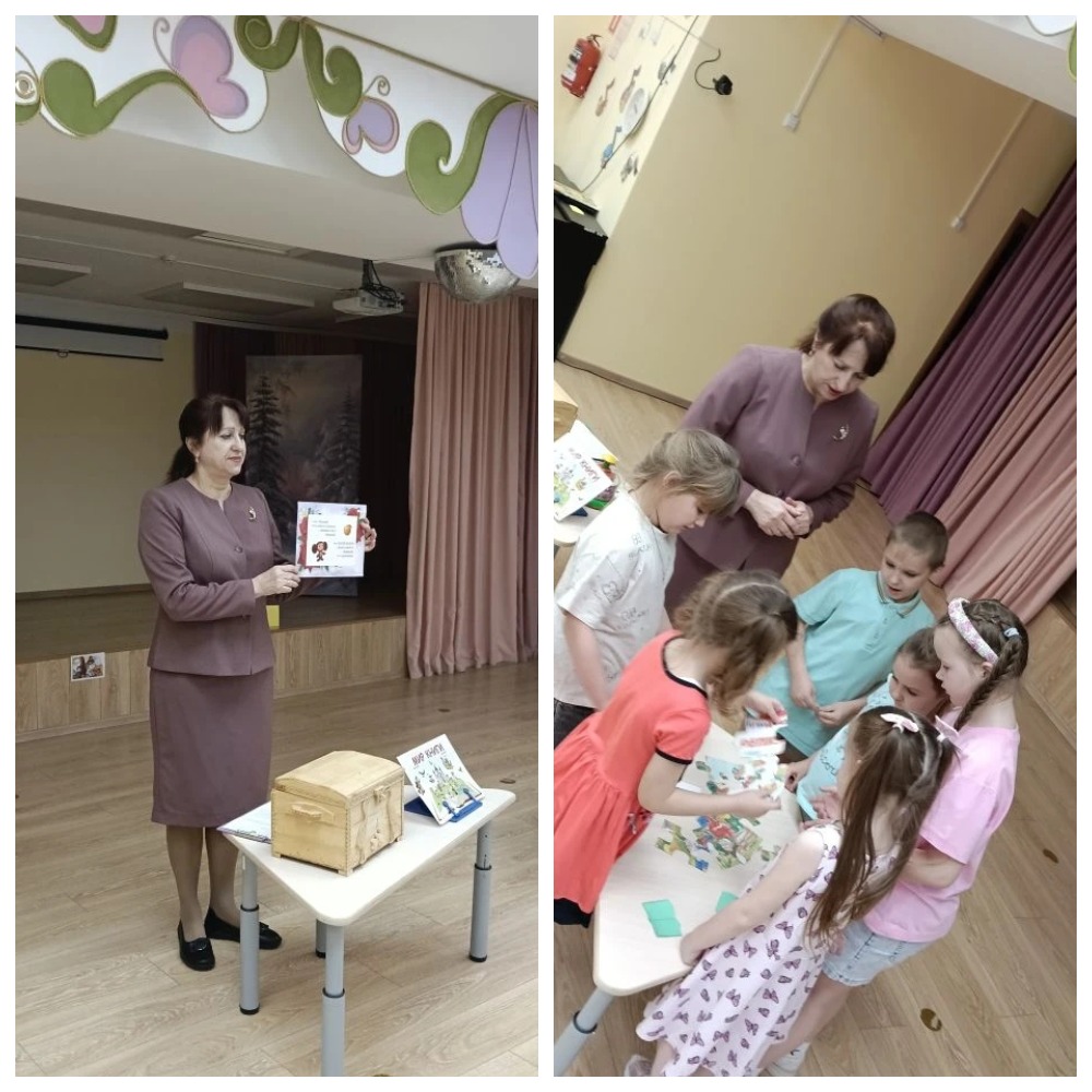 В этот день ребята отправились в настоящее литературное приключение! Сначала они с азартом отгадывали загадки, которые выбирали с помощью вращающейся юлы. Затем им предстояло собрать обложку известной сказки «Репка», отыскав расклеенные по залу картинки и сложив их в правильном порядке. Это задание потребовало не только внимательности, но и хорошего знания сюжета.